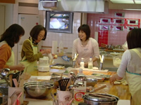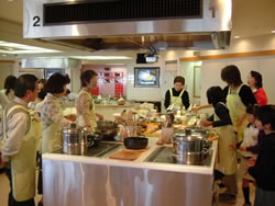 IHクッキングヒーター利用のコツを料理教室の先生が伝授。火を使わない安全調理ならではの光景がみられました。お子様も焼いたり、炒めたり、奮闘中です。 |