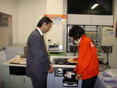 IH会場では、日立の担当者が直接説明。便利なタイマーやオート機能の使い方、安全機能や取扱方法などの説明を行いました。